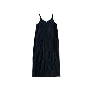 You're going to live in this one. This is a tank slip dress with a double scoop neckline, adjustable straps and a side slit. It's made with a drapey twill fabric.