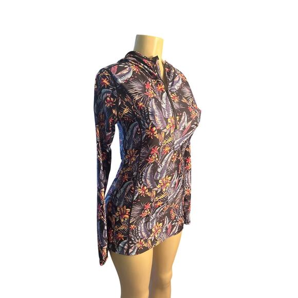 Women XS Inno Black Floral Print Surf Swim Rash Guard Shirt Top Long Slv Hooded