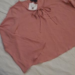 Tea pink cute blouse with Long-Flared sleeves, and cute Round Neck