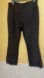 These are pre-owned black cropped pants, possibly leggings, featuring a wide, elastic waistband. The material appears to be a knit blend. The hem is adorned with a decorative floral lace trim. There are no visible brand markings. The pants show minimal signs of wear, with a few minor imperfections. The overall condition is good.