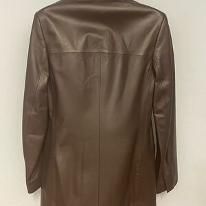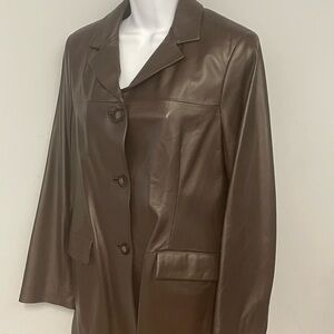 New without tags made in Italy jacket blazer lambskin leather brown button front 2 pocket front button soft leather