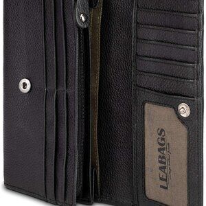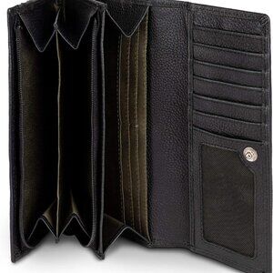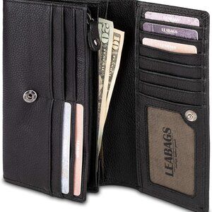 Features: Crafted from high-quality genuine cowhide leather with a structured finish, this small wallet offers a sleek, elegant look and thoughtful organization. It has 18 credit card slots, 2 bill compartments, and a zippered coin section, making it super practical while staying slim. Button closure keeps everything secure and flat.
