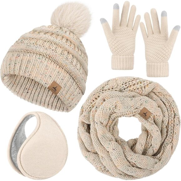 Women off wight Knit Beanie Hat, Gloves, Scarf & Ear Warmer Set - Winter