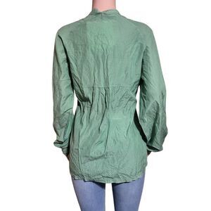 Women peasant mandarin collar spearmint silk boho top casual loose blouse M