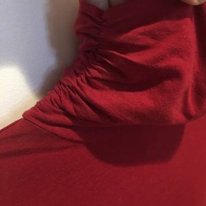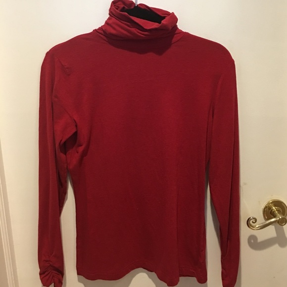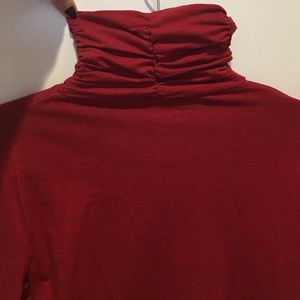 Women's ruched high (mock) neck red top. This is not ur old school turtle neck. This is gorgeous red. The material is very soft. It has super flattering ruching in the sleeves and neck. Size Medium can fit a small. I just don't wear much any more but can be worn so many different ways. Tucked in- belted. I have another color that I will posted too.