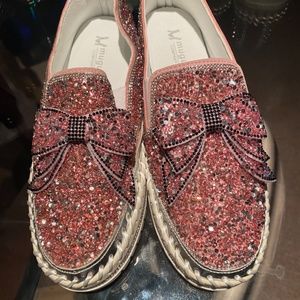 Pink and silver slip on flat shoe
