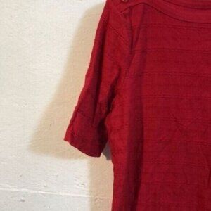 red top, women's clothing, button shoulder, textured fabric, short sleeve, casual wear, professional top, ladies blouse, red blouse, office wear, classic fit, elegant top, red fashion