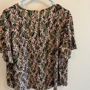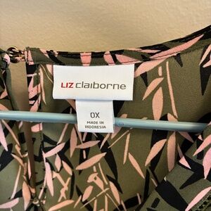 Liz Claiborne top olive green background with pink and black shape see pic