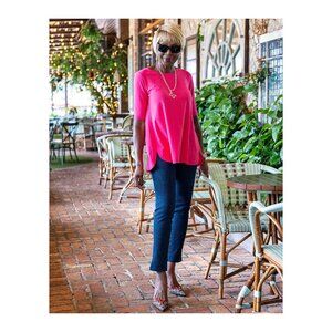 Fabrication: knitFeatures: Tummy Control with Blu-Tec Control SystemTM, stretch denim, front pockets, side slitsRise: slightly below the waistFit: fitted; cut to follow the lines of the body with added wearing easeLeg Shape: slim leg; fits close to the body through the entire legInseam: tall missy/plus inseam 32"Content: body 95% cotton/5% spandex; lining 84% nylon/16% spandexCare: machine wash cold, only non-chlorine bleach when needed; tumble dry lowImported