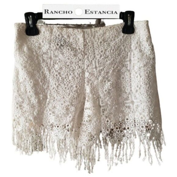 Rancho Estancia Fringe Hem Guipure Lace Casual Shorts White NEW