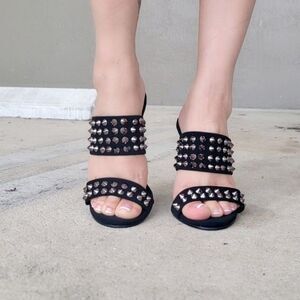 Women Metallic Studs Double Band High Heels Sandals Black Color