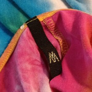 Brighten up your wardrobe with this vibrant tie-dye one piece. Perfect for playful days, this outfit features a mix of pink, orange, yellow, and blue colors. Ideal for any fun occasion.