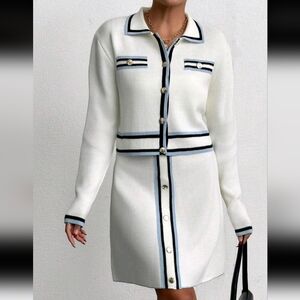WomenPoloNeck Pocket And Button Detailed Elegant Sweater Cardigan Adn Mini Skirt