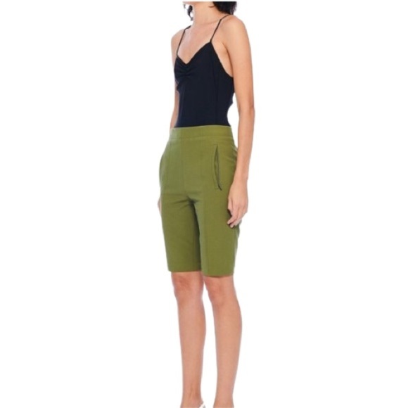 Tags: tibi, anson, stretch, biker short, Festival, streetwear, day date, rooftop, birthday party, beach, summer, winter, spring, fall, casual, day outings, vacation, parties, errands, coffee date, get-togethers, bbq, high rise, business casual, Dressy Shorts, army green, tailoring, Rockstar Girlfriend, Old Money, bermuda, casual, pockets, edgy, fitted, form fitting, slight stretch, pull on, skater, trendy