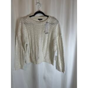 Women's 1. State Antique White Sequin Long Sleeve Pullover Sweater Sz M