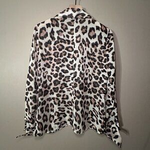 Women's 10 Boston Proper Leopard Print Button Down Sheer-Like