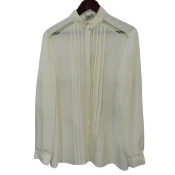Women’s 10 Philosophy di Alberta Ferretti Ivory Pintuck Silk Blouse NWT