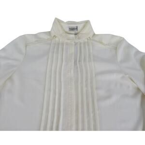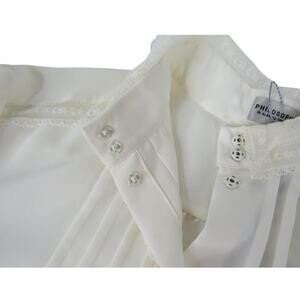 Philosophy di Alberta Ferretti blouse, new with tags. Ivory silk-blend with pleated pintuck front, high neck, and long sleeves with cuff detail. Size 44 IT (US 10, see tag). Elegant and timeless, crafted in Italy with signature attention to tailoring. Originally retailed over $400. Ideal for workwear, holiday gatherings, or layered under blazers for quiet luxury style. A collectible piece that transitions easily across seasons. Laundering recommended upon receipt.