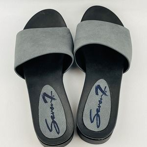 Womens 10 Seven7 Pearl Slide Gray Faux Leather Slip On Sandals