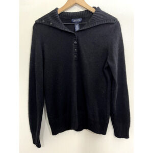 Womens 100% Cashmere Sweater M Collared Warm Cozy Pullover Retro Academia Preppy Black.