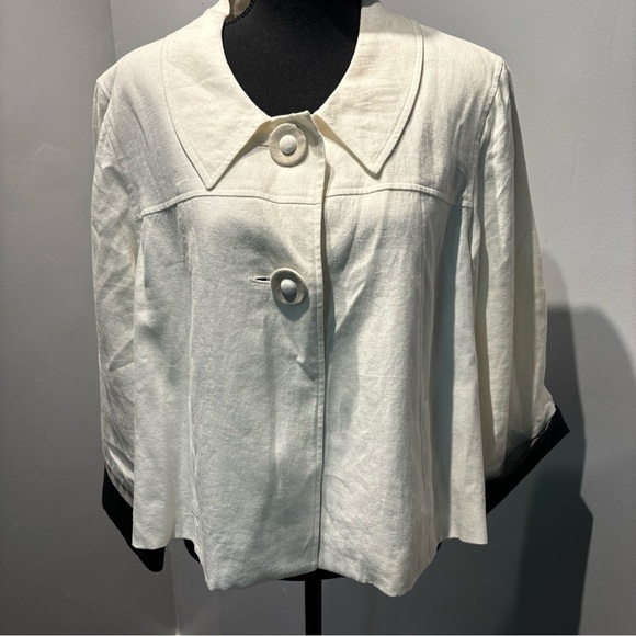 Elevate your wardrobe with this stunning Style&Co blazer jacket in a beautiful ivory color. Crafted from 100% linen with a chambray fabric type, this jacket features short flare sleeves and a button closure. The jacket is perfect for any occasion, whether it's for business, formal events, or casual wear.
