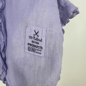 Womens 100% linen 3/4 Sleeve Button Front Blouse Size M Purple Ruffles Fairy