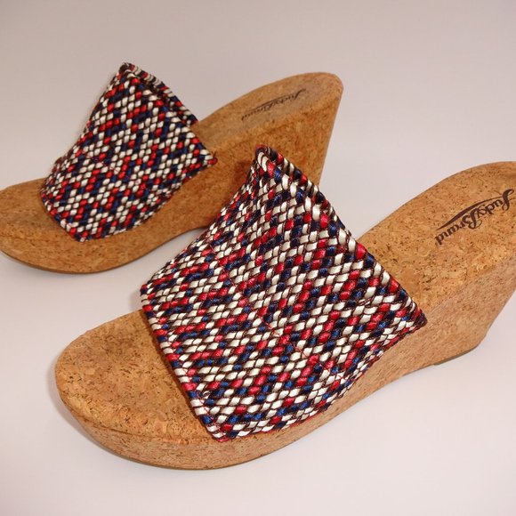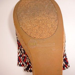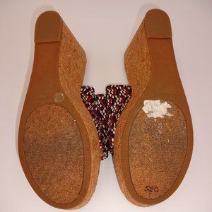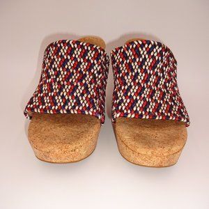 Womens 10M 10 Lucky Brand White Blue Red Slip On Platform Shoes Sandals Cork