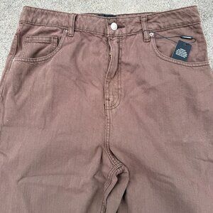 Womens 11 High Rise Wide Leg Jeans Brown Y2K Denim Raw Hem Juniors