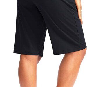 Features: These knee-length bermuda shorts are super soft, stretchy, and lightweight, making them perfect for summer comfort. The relaxed straight leg fit prevents thighs from rubbing and riding up, so you can move freely. The wide 4" waistband offers tummy control and stays put, no matter how active you get. With 2 front deep pockets and 1 back pocket, you have plenty of space for your essentials like your phone and keys.
