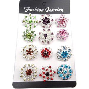 Womens 12 Pcs Silver Gold Plated Crystal Brooches Flower