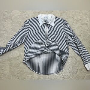 Women’s 12 Petite RENA ROWAN Grey White Multidirectional Striped 100% Cotton Top