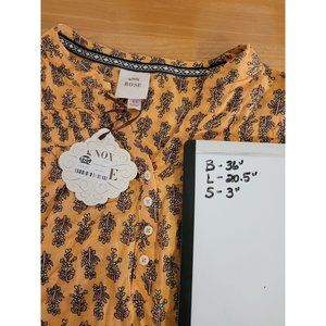 Women's 1/4 Button Down Flutter Sleeve Blouse -Knox Rose Sahara Gold Floral XS
