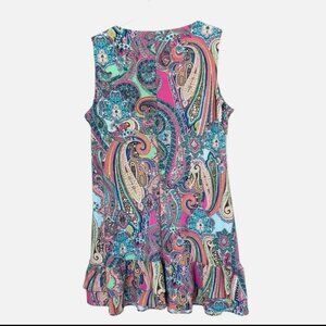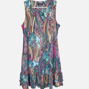 Women's 14 Colorful Ruffled Hem Teal Pink Paisley Shift Casual Stretchy Dress