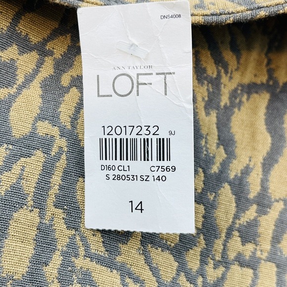 Womens 14 LOFT Animal Print A-Line Skirt Tan Gray Lined 18" Length
