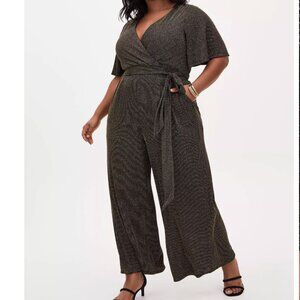 Women's 14/16 Torrid Black and Gold Shimmer Surplice Jumpsuit (Torrid 1), EUC