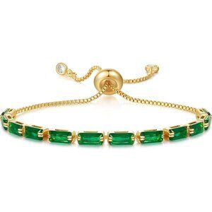 Women's 14K Gold Plated Green Cubic Zirconia Adjustable Stackable Bracelet