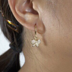 Elevate your style with this exquisite Women's 14k Gold Plated White Cubic Zirconia Butterfly stones settings, a dazzling addition to any jewelry collection. Crafted with precision and plated with luxurious 14k gold. These earrings exudes elegance and sophistication. Lever back Closure.
