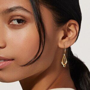 Women's gold earrings Designer inspiration draws from falling water droplets. Modern minimalist stud design adds effortless elegance to any look.