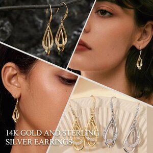 Women's 14K Gold-Plated and Silver Dainty Jewelry Cute Teardrop Stud Earrings