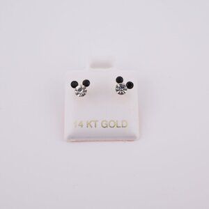Introducing our charming Women's 14k Gold Mickey Mouse CZ Novelty Mini Stud Earrings, the perfect way to add a touch of whimsy and nostalgia to your jewelry collection. These earrings feature a classic Mickey Mouse silhouette adorned with dazzling cubic zirconia (CZ) stones for a subtle sparkle.