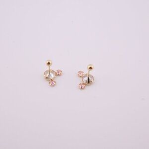 Women's 14k Gold Pink Mickey Mouse Silhouette Cubic Zirconia Mini Stud Earrings*