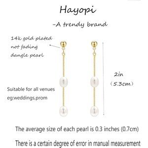 Pearl Earrings Size:Comes with a gold chain of 2.3 inches treaty, paired with several pearls lightweight, It's hypoallergenic pearl earring for women, the jewelry is not easy to oxidize, it has a good antioxidant effect to increase the service life
