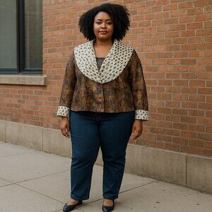 Womens 16 Tiger Cheetah 2 Button Brown Luxury Mob Wife Jacket by Joseph Ribkuff