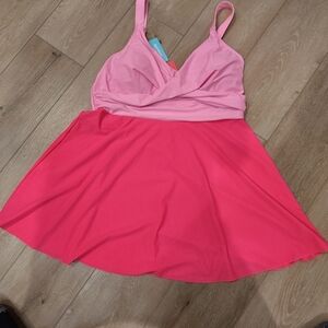 Aqua Eve Women 18 Pink 2 Tone Swim Dress Tankini Boy Shorts Tummy Control