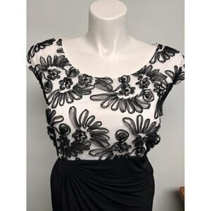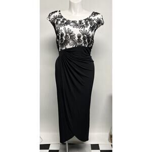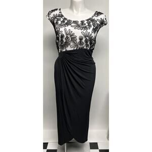 Womens 18W Formal Party Evening Maxi Dress Ruched Waist Slimming Appliqué Glam