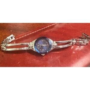 Women's 18mm Silver Tone George Watch, Faceted Blue Crystal