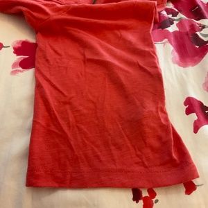 Reddish orange casual lightweight top. Snap tab sleeves optional. 3/4 sleeve length. Pet and smoke free home.