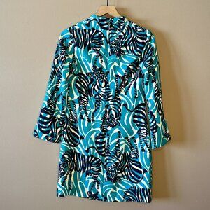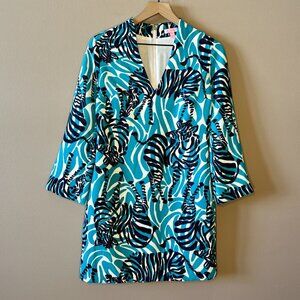 Women's 2 Lilly Pulitzer Devina Tunic Zebra Dress Teal White Funky Print