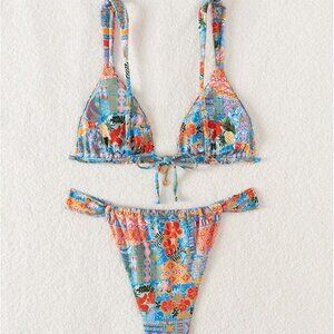 Women's 2 Piece Floral Tropical Print Bikini Set Boho Triangle Bathing Suit Tie Backless Swimsuit Sets