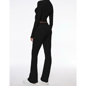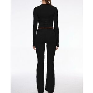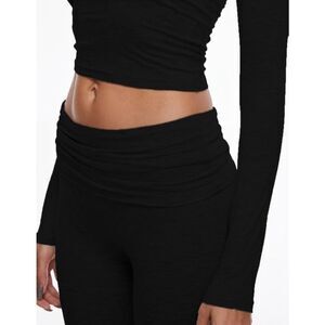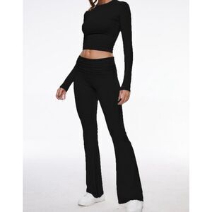 Women's 2 Piece Lounge Crop Top Fold-over Flare Pants Set